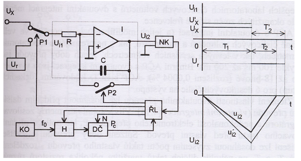 - Před začátkem převodu je integrační kondenzátor C vybit a dekadický čítač DČ vynulován.