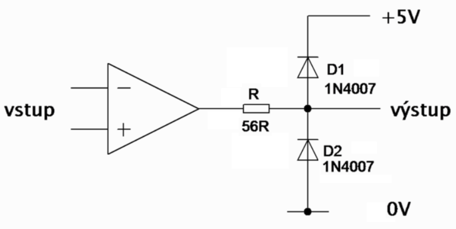 - Do série s výstupem se zařazuje rezistor o hodnotě 47 Ω až 2 kΩ. Moderní OZ mohou mít integrované elektronické pojistky.